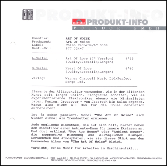 Produced, arranged and performed by Art of Noise