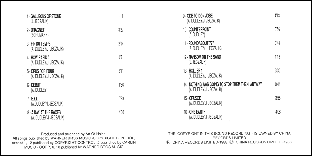 Composed by Dudley/Jeczalik • Published by Warner Bros. Music