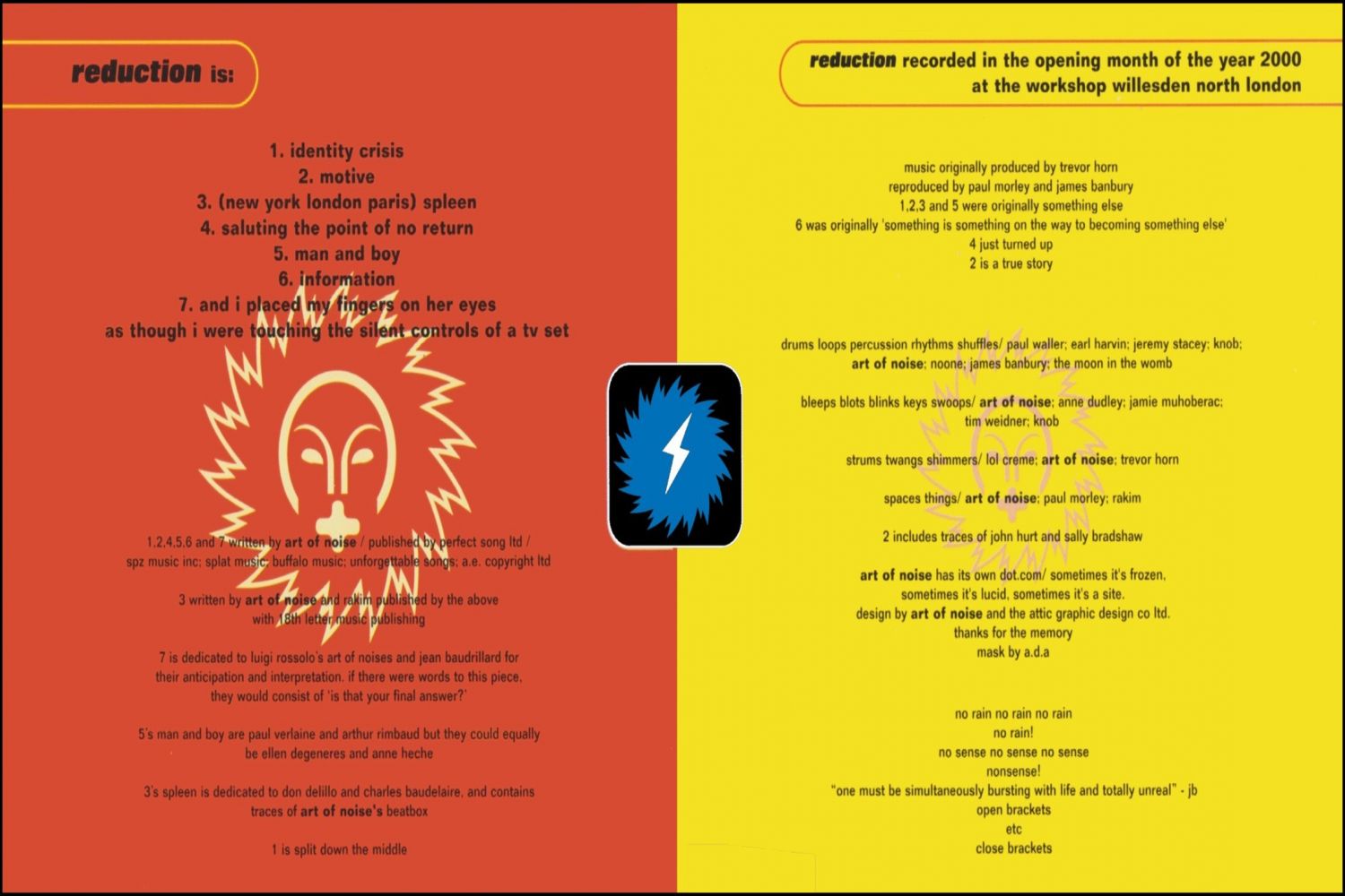 Initial copies of Reduction were shrikwrapped with the free bonus CD The Seduction Of Claude Debussy for a limited time on 20th March 2000. In July of that year Reduction was sold on its own.