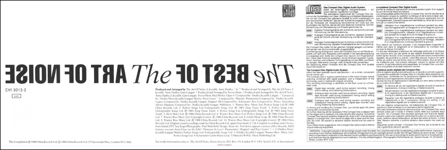 3, 4 are listed as solely produced and arranged by Trevor Horn. The composers credits for Paranoimia incorrectly state Dudley/Jeczalik instead of Dudley/Jeczalik/Langan as the writers.