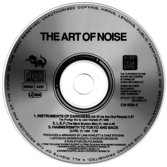 Control from L.E.F. (The Mark Brydon Mix). The inlay for tracks 1 & 3 lists the phonographic copyright dates as ℗ China Records 1986 and track 2 as ℗ China Records 1987 with © copyright dates listed as © China Records 1992